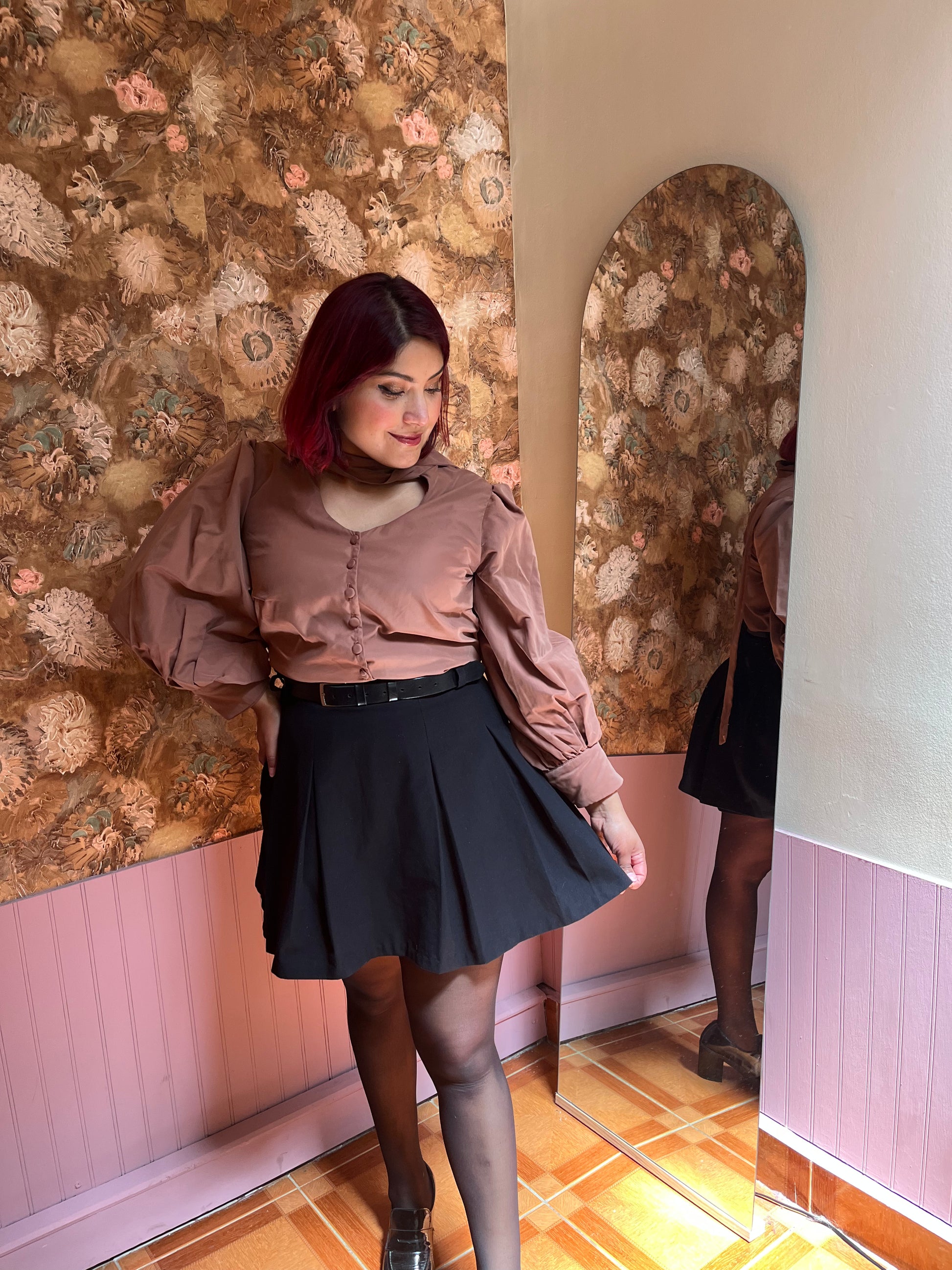 Falda con shorts invisibles, disponible en su versión New York con modelo A-line levemente acampanado, y en su versión London, con su modelo tableado, para que siempre luzcas todos tus looks con comodidad. Esta falda está disponible a medida en negro, gris, medianoche y burdeo.